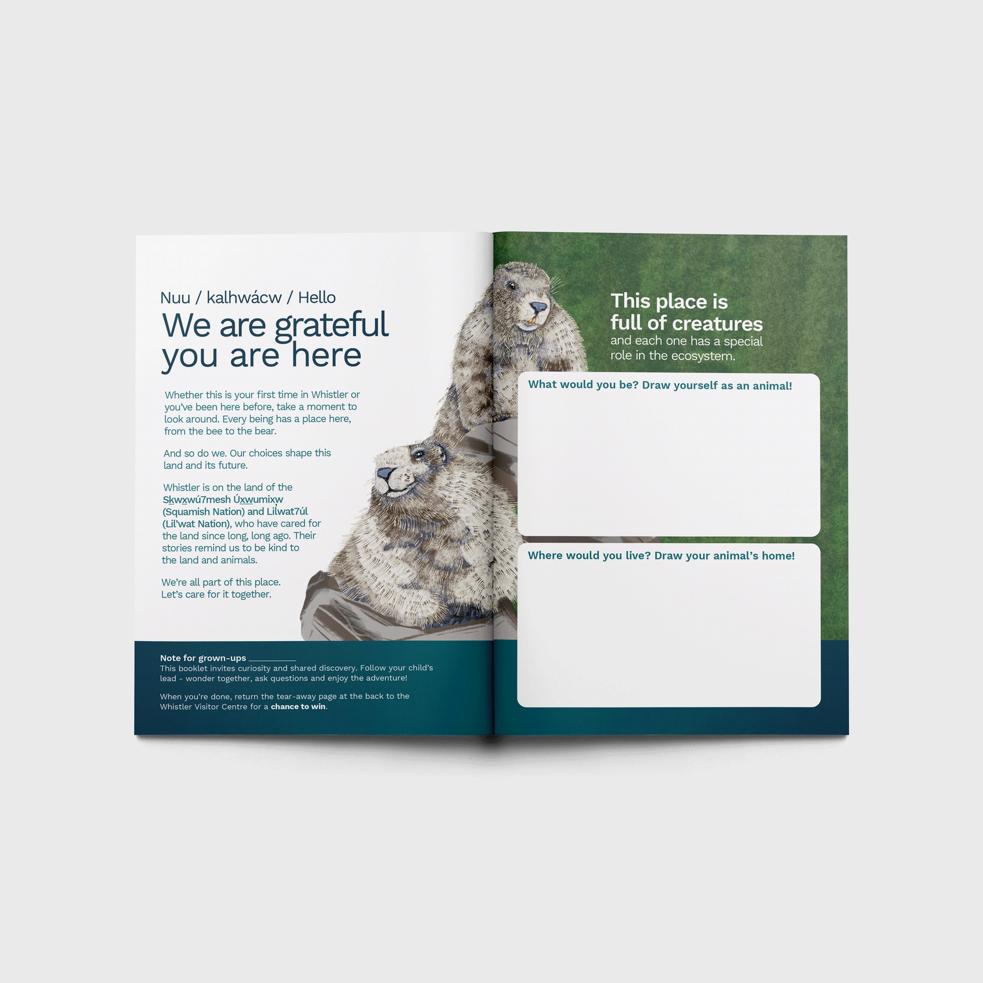 I worked with Tourism Whistler on a unique project to create an engaging and educational experience for young visitors. The goal was to showcase Whistler's unique environment, culture, and heritage in a way that's both fun and meaningful. The project was designed to inspire young adventurers to become responsible visitors who understand, respect and care for Whistler's incredible natural and cultural wonders.